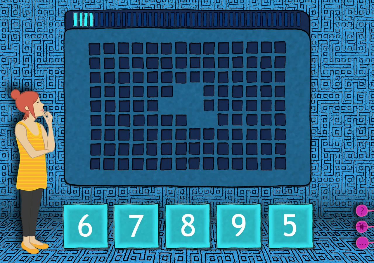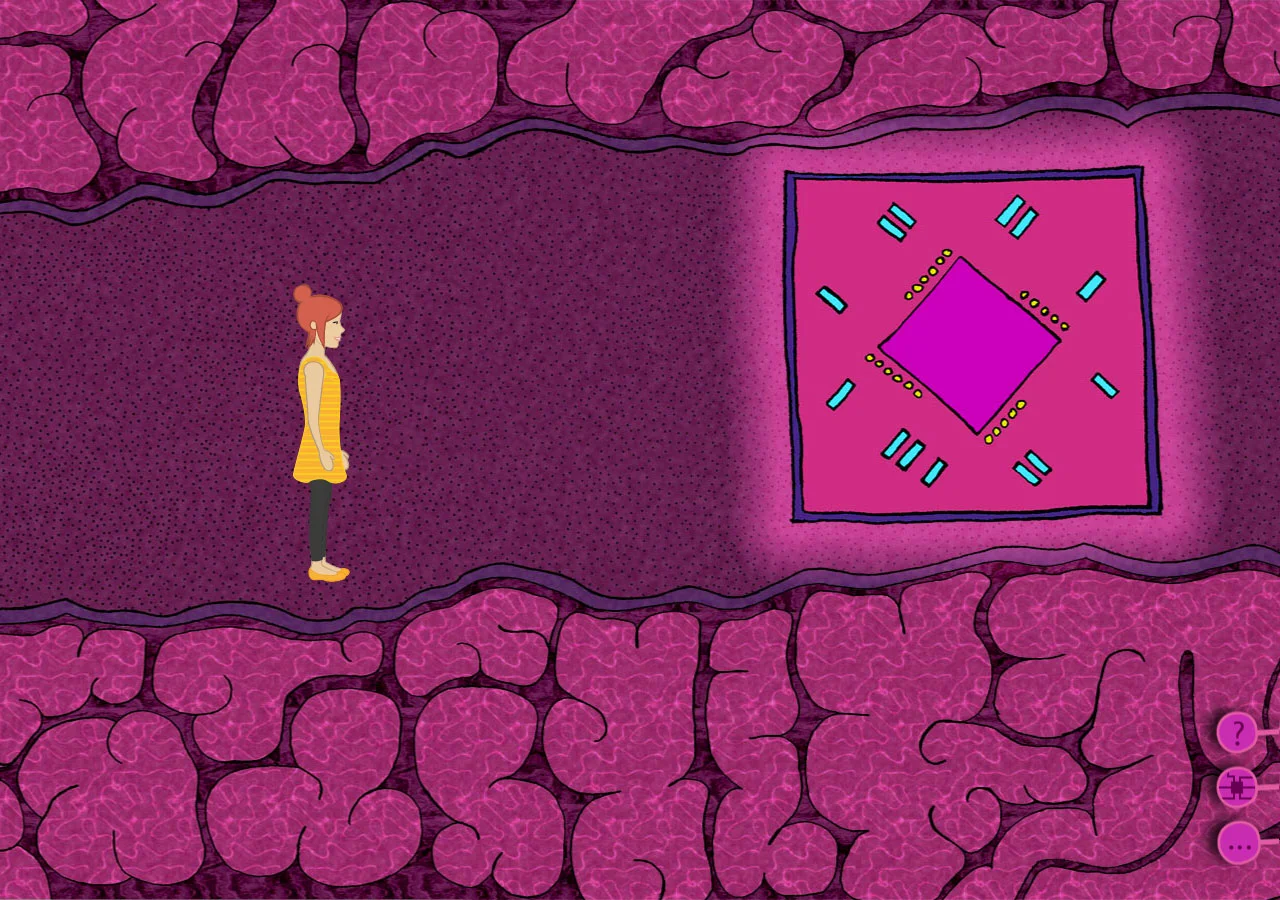 The game starts with Zerone at the beginning of her way to the Central Processing Unit (CPU). A mini map of the motherboard is available to show Zerone's current location. Uncharted roads and computer parts are overlaid with a black solid color while a help tip is always provided upon clicking the question mark button.